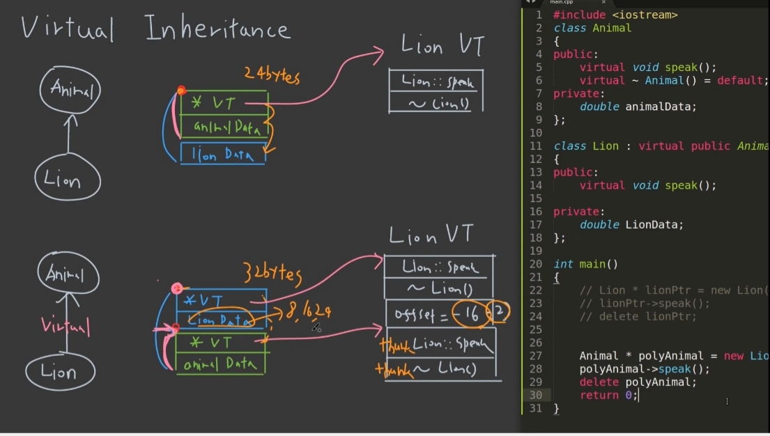 - 클래스의 크기는 가장 큰 멤버 변수의 배수로 끝남