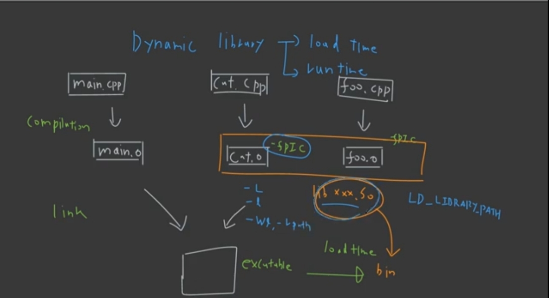 - 링킹 시점에 실행파일에 바인딩 된다.